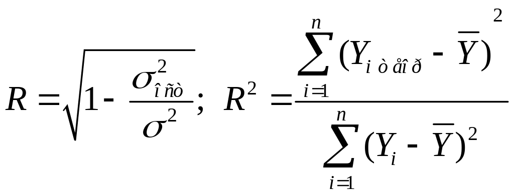 о2ост —остаточная дисперсия, характеризующая вариацию У за счет факторов, не включенных в уравнение регрессии.