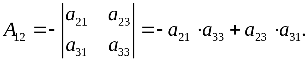 Определение. Алгебраическим дополнением любого элемента определителя называется минор этого элемента, взятый со своим знаком, если сумма номеров строки и столбца, на пересечении которых стоит этот элемент, есть число четное, либо с противоположным знаком, если эта сумма есть число нечетное. Обозначение алгебраического дополнения Аij.