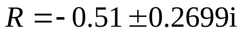 где результатом выполнения этой команды будут векторы-столбцы вычетов R и полюсов Р. Так как у нас комплексно-сопряженные полюса и вычеты, то такую пару слагаемых объединим: