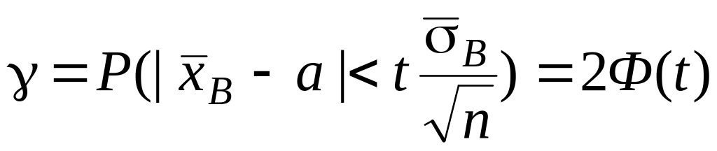 Для заданного по таблице функции Лапласа (Приложение 4) определяют квантиль t для функции Ф(t).