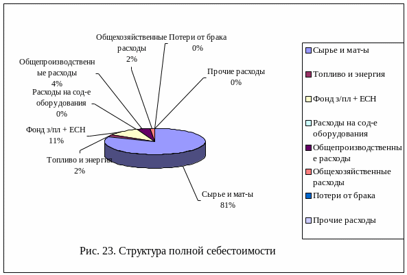 Производство материалоемкое, более половины затрат приходится на сырье и материалы. Расходы на заработную платы и ЕСН 10,75%. Доли остальных составляющих в себестоимости продукции невелики.