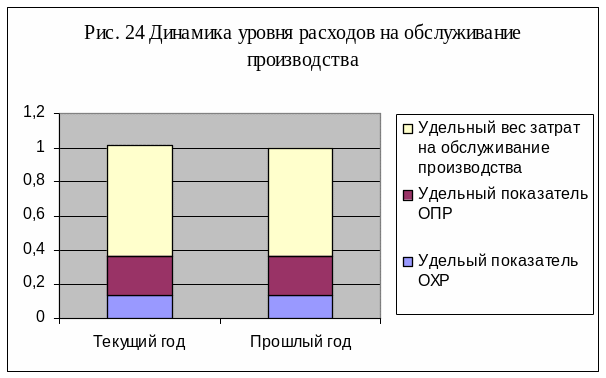 Таблица 4.2 - Динамика уровня расходов на обслуживание производства и управление в себестоимости товарной продукции