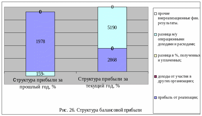 Из данных Таблицы 4.5 следует, что от реализации продукции, услуг предприятие получило прибыль за оба отчетных периода; к концу года она увеличилась с 13350 до 14373 тыс. руб. Балансовая прибыль образовалась за счет прибыли от реализации.