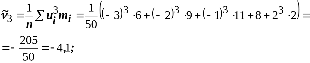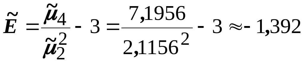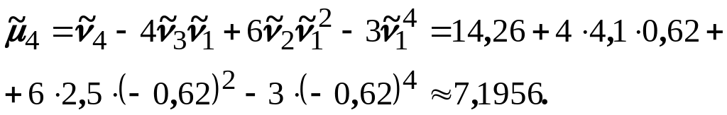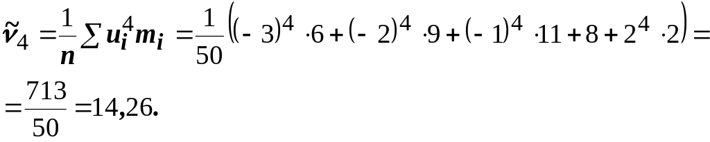 Пример 39. Перейдя к условным вариантам, вычислить эмпирические коэффициенты асимметрии и эксцесса для интервального вариационного ряда.