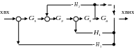 За допомогою програми Matlab 6.5 необхідно визначити еквівалентну передаточну функцію для схеми САУ зі зворотнім зв’язком, що представлена на рис.6.