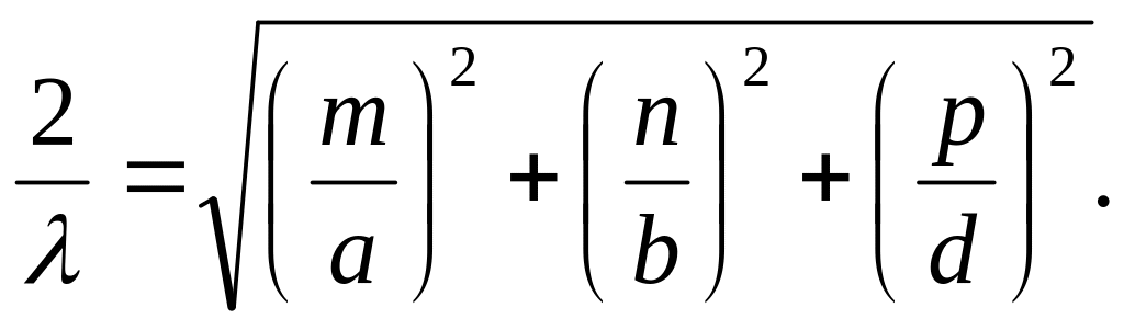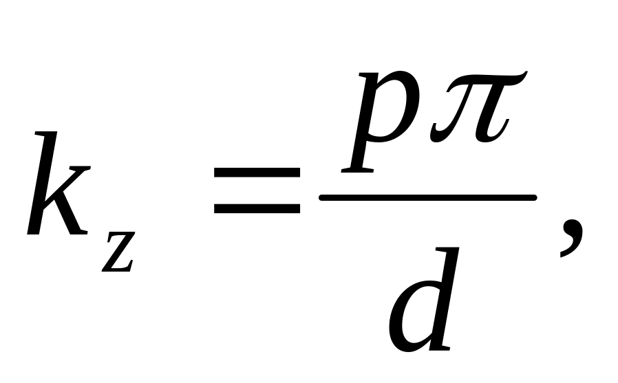 В прямоугольных резонаторах могут существовать как моды ТЕ mnp , так и моды ТМ mnp. Индексы m, n, p суть числа стоячих полуволн соответственно в направлениях x, y, z (рис.2.). Эти моды получаются из волн типа ТЕ mn и ТМ mn в волноводе за счет того, что длина резонатора выбирается равной (2d)/в. Размеры резонатора в направлениях x, y, z составляют соответственно a, b, d. Постоянная распространения
