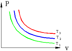 Рисунок 3. Изотермические процессы в P – v координатах T1>T2>T3 (обратно к содержанию) |