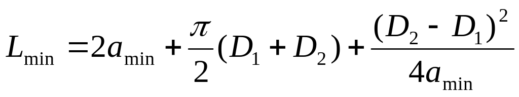 9.7. Мінімальну і максимальну розрахункові довжини паса Lmin, Lmax, мм, визначаємо за формулами