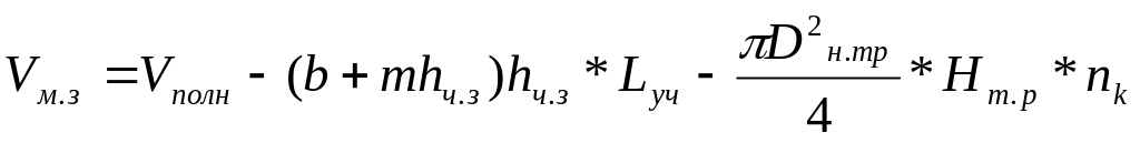 Vмз3 = 432,4-(1,4+0,25*0,7)*0,4*410-(3,14х0,04/4)*2,31*4 =224,72 м3