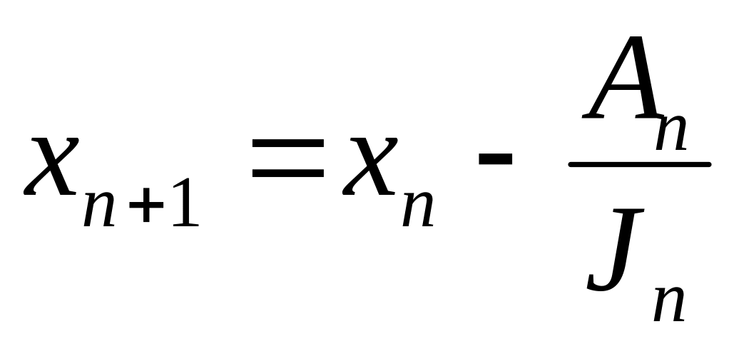 Последовательные приближения по методу Ньютона вычисляются по формулам