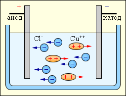 Проходження електричного струму через електроліт обов'язково супроводжується виділенням речовини в твердому або газоподібному стані на поверхні електродів. Виділення речовини на електродах показує, що в електролітах електричні заряди переносять заряджені атоми речовини - іони. Цей процес називається електролізом.