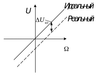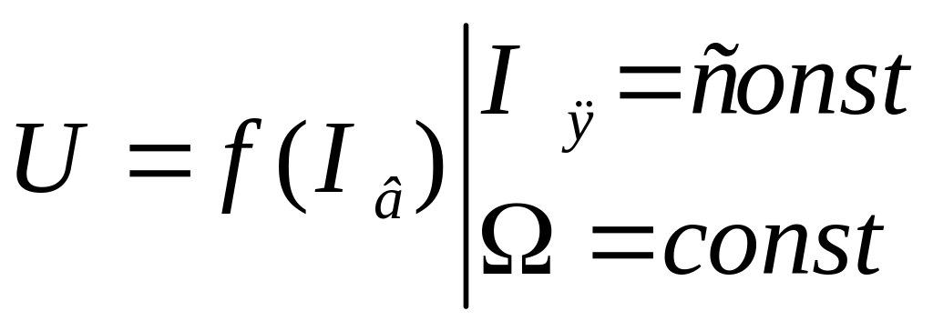 Данная зависимость отличается от предыдушей тем, что происходит ниже на величину падения напряжения на внутренних цепях машины.