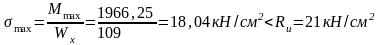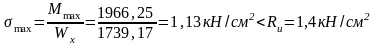 Требуемое значение момента сопротивления сечения меньше фактического 1739,17>1404,46.