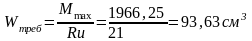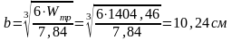 2. Теперь подберем сечение прямоугольной формы. Сначала найдем момент сопротивления сечения по формуле (7):