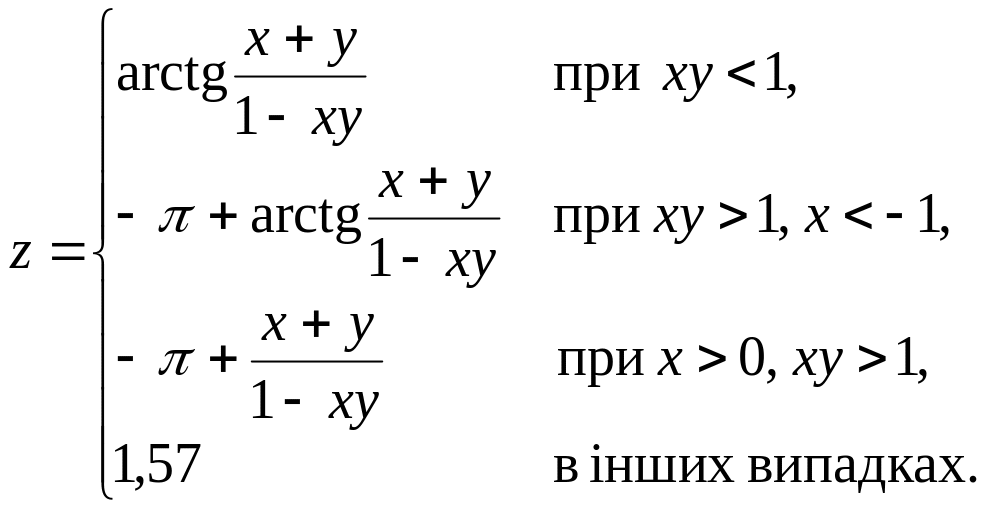 Дано дійсні числа x, y. Визначити, чи належить точка з координатами x, y складеній з декількох незв’язаних ділянок заштрихованій частині площини, включаючи межі (рис. 1.4, а–1.4, в).