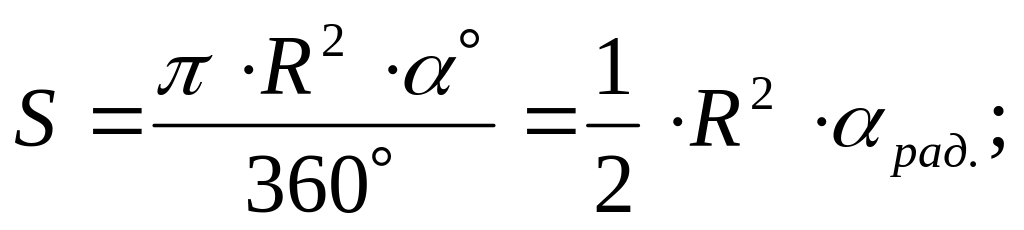 площадь S = π∙R2; длина окружности C = 2∙π∙R;