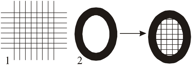 Одна из операций, формирующих комплексные объекты попала в меню Effects (Эффекты). Речь идёт о функции, названной PowerClip. Контейнером (2) для вложения служит любой замкнутый контур, а вложенным объектом (1) может стать как векторное, так и растровое изображение.