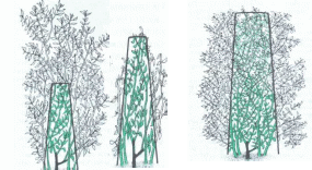 3. Весна. Обріжте основні торішні прирости наполовину, а бокові гілки, шо залишилися, - на відстані декількох сантиметрів від скелетних гілок.