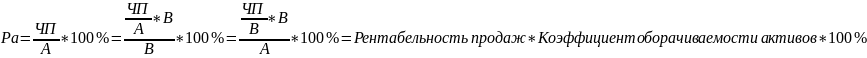Т.о. это выражение в теории финансов получило название формулы Дюпона.