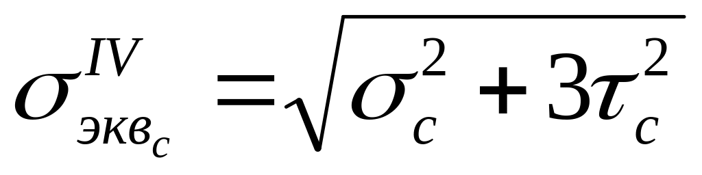 Здесь также возникает плоское напряженное состояние. Пользуясь той же теорией прочности, вычисляем эквивалентное напряжение в точке с:
