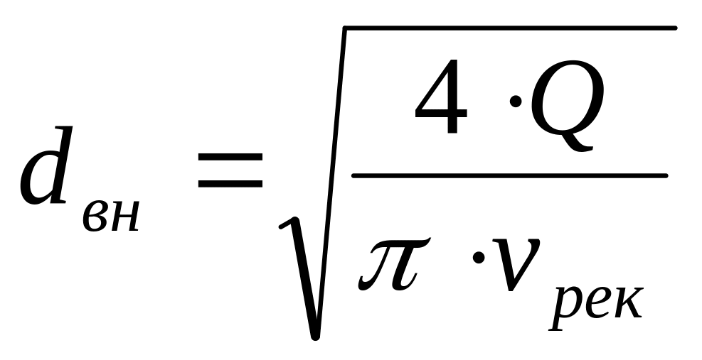 Внутренние диаметры трубопроводов определяются на основе уравнения