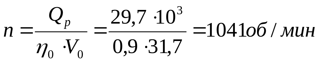 QH = η0∙V0∙n = 0,90∙31,7∙1200=34236см3/мин=34,2л/мин,