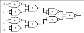 Для того чтобы реализовать булеву функцию только на базе вентиля НЕ-И или НЕ-ИЛИ, можно сначала следовать описанному алгоритму, сконструировав схему с вентилями НЕ, И и ИЛИ. Затем нужно заменить многовходовые вентили эквивалентными схемами на двухвходовых вентилях.