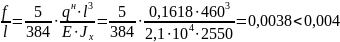 Принимаем Ι20,Wх = 184 см3, Jх= 1840 см4;