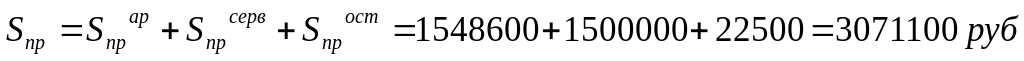 С = Sа + Sпр = 16500000+3071100 = 19571100 руб