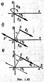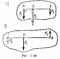 Следовательно, FΣ = 20 Н, а ее линия действия, параллельная составляющим силам, проходит от точки A1 на расстоянии l = 0,45 м (рис. 1.47,6).