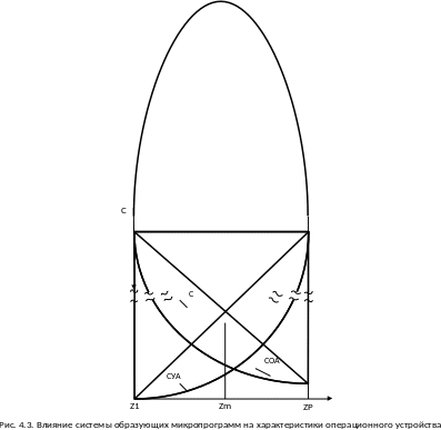 Задача порождения систем образующих (наборов микроопераций и логических условий), минимизирующих затраты оборудования или обеспечивающих заданное время выполнения операций в устройстве, сложна, что затрудняет разработку формальных методов выбора оптимального состава микроопераций и логических условий. Этот факт отмечен на рис.4.3 разрывами по оси абсцисс графиков функций СОА, СУА и С в связи с неопределенностью в общем случае местоположения ординат СОА, СУА и С. Эта ситуация типична как для процессоров, так и для контроллеров. И эта ситуация связана только с тем, что возможности создания в принципе любых технических систем всегда ограничены возможностями микроэлектроники как искусственной технологии, всегда ограничивающей возможности создания сверхбольших интегральных схем предельной площадью кристалла для размещения полупроводниковых элементов.