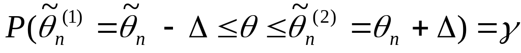Интервальной оценкой параметра θ называется числовой интервал , который с заданной вероятностью γ накрывает неизвестное значение параметра θ.
