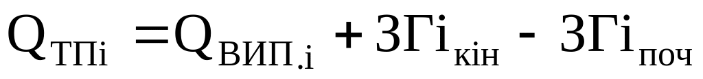 Отже виробнича програма (обсяг товарної продукції) виробів і-го найменування встановлюватиме: