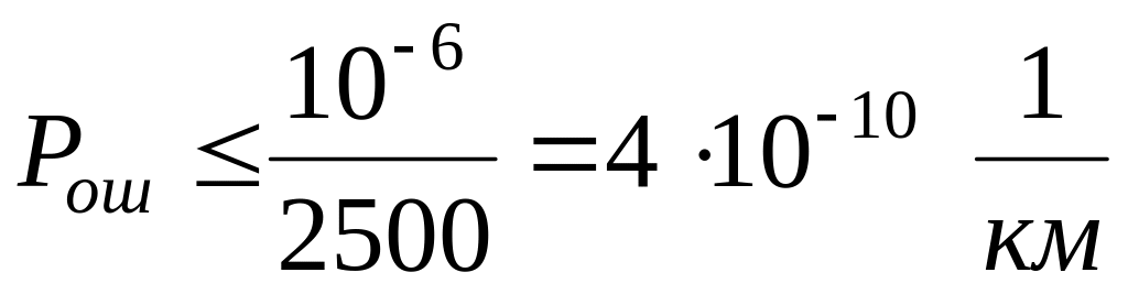 При длине переприемного участка по ТЧ 2500 км допустимая вероятность ошибки на 1 км тракта будет равна