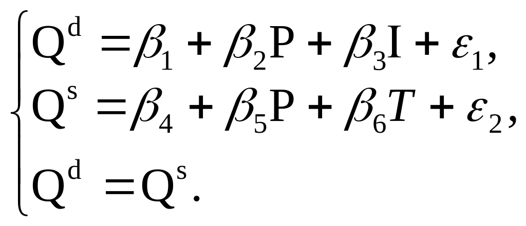 Структурная форма модели спроса-предложения имеет вид: