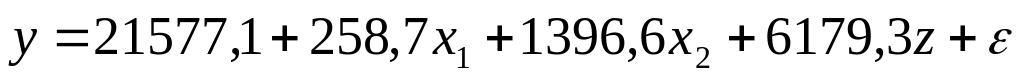 При исследовании зависимости уровня заработной платы (y) от возраста сотрудника (x1), стажа (x2) и пола сотрудника (z) получено следующее уравнение