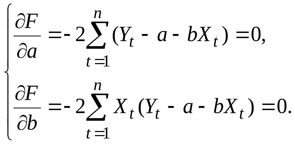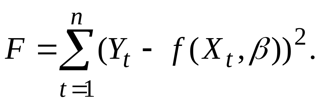 В качестве меры отклонений функции f(X,) от набора наблюдаемых значений выберем сумму квадратов отклонений, т.е.