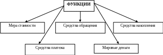 Какие же функции выполняют деньги в этих условиях? Они представлены в следующей схеме.