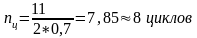 Число циклов определим из формулы