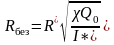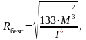 Розміри зони теплового впливу під час пожежі розраховують за співвідношенням, яке визначає безпечну відстань Rбез, м, при заданому рівні інтенсивності теплового випромінювання для людини: