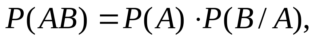 Теорема умножения 2. Вероятность произведения двух произвольных событий равна произведению одного из них на условную вероятность другого, вычисленную в предположении, что первое событие уже произошло
