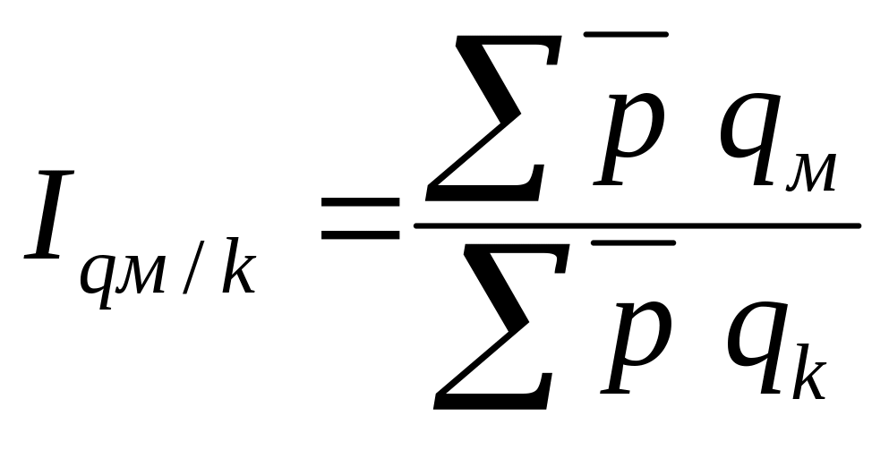 Для преодоления противоречий в показаниях между сводными (общими) территориальными и индивидуальными (однотоварными) индексами определяется индекс цен, в котором в качестве веса-соизмерителя выступает сумма реализации товаров по двум городам: