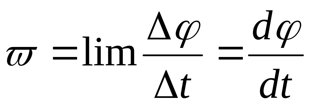 Угловой скоростью называется векторная величина равная первой производной угла поворота по времени;