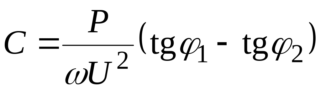 Коэффициентом мощности нагрузки называют косинус угла сдвига фаз между питающим напряжением и током в ней. Для уменьшения потерь при передаче энергии стремятся повысить коэффициент мощности электрической цепи путем включения параллельно индуктивной нагрузке конденсатора необходимой емкости, величину которой можно рассчитать: