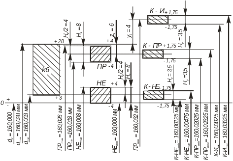 В соответствии со схемой расположения полей допусков калибров для контроля вала Ø160k6 определяем числовые значения параметров H1, Z1, Y1, Нр (таблица 2 ГОСТ 24853):