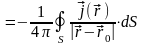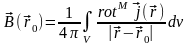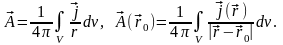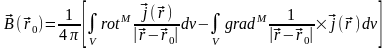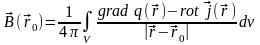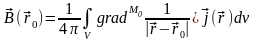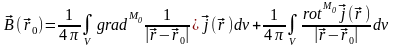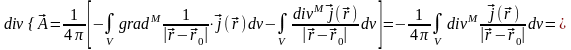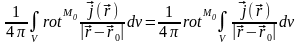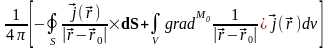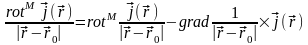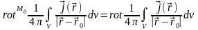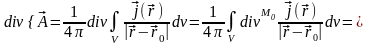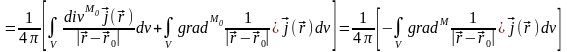 Будем обозначать точку интегрирования с координатой через М, а точку наблюдения с координатой через М0. Тогда, как было показано в предыдущей лекции, решение векторного уравнение Пуассона дается следующим выражением: