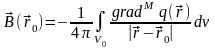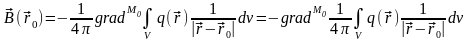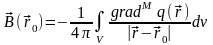 При написании этой формулы нами специально указано, что вычисление градиента (дифференцирование) плотности распределения источников q производится по точке интегрирования М.