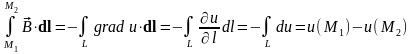 Работа безвихревого поля по любому пути L между двумя точками М1 и М2: