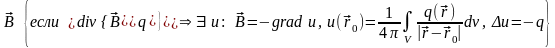 Покажем, что поле можно определить через некоторую скалярную функцию u, называемую скалярным потенциалом, выраженную через плотность распределения источников q.