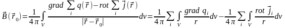 С учетом того, что плотность вихрей в нашем случае равна нулю, а все источники поля могут находиться в некотором ограниченном объеме V, последний интеграл можно записать в следующем виде: